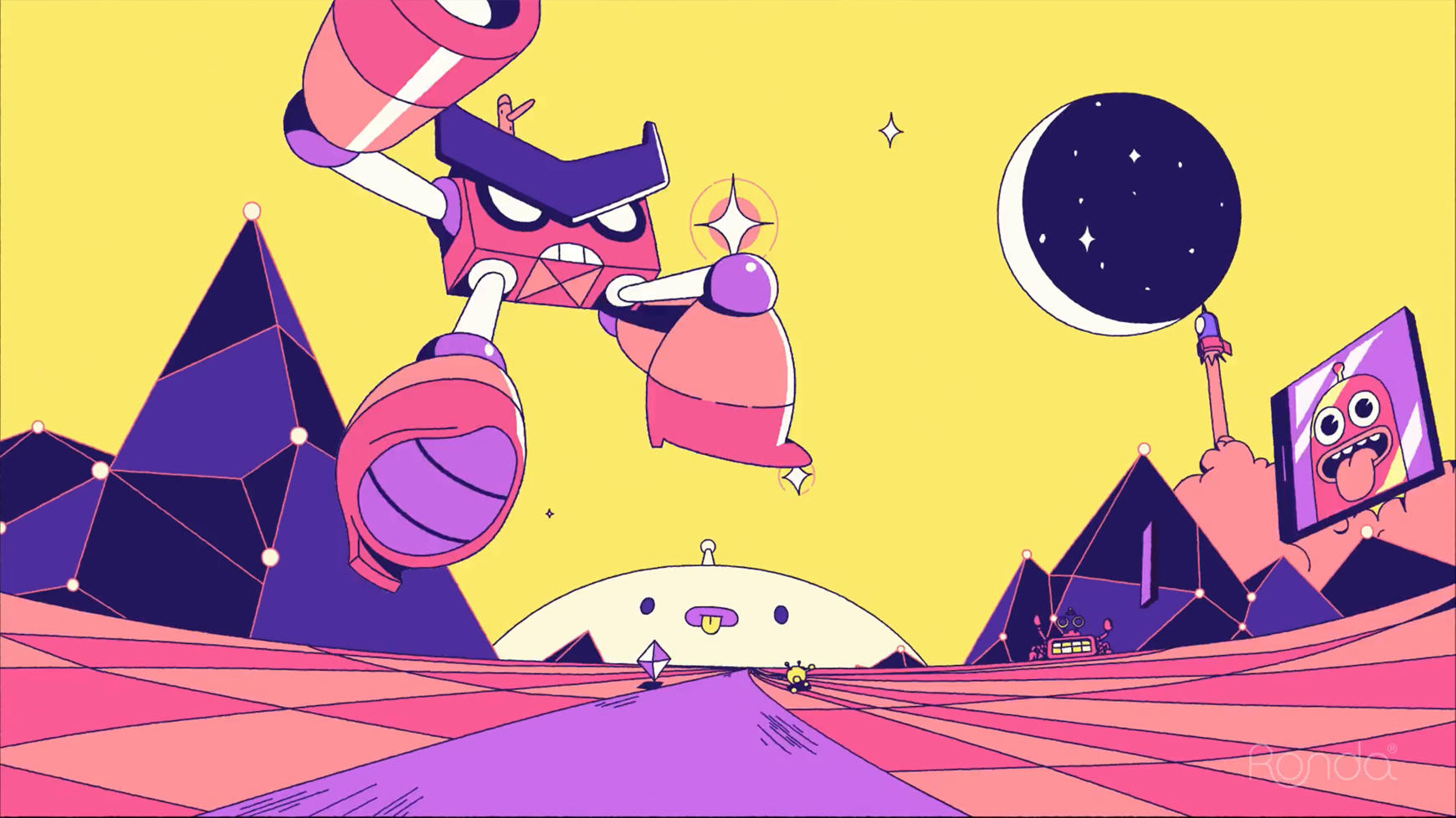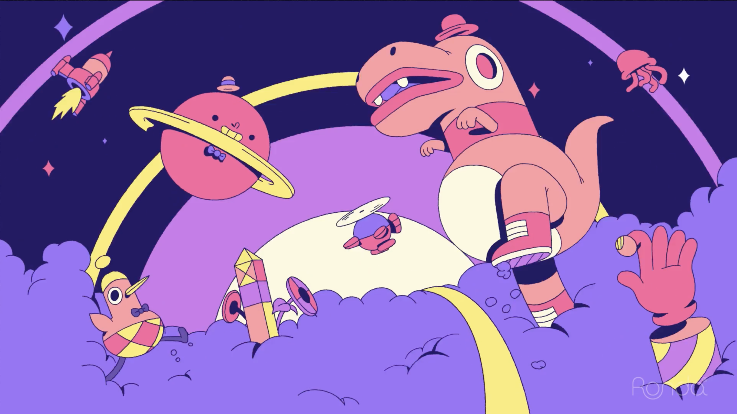 STRABOING is the latest Segment of Boing Channel destined to the biggest kids and the youngest teens. Throughout this crazy journey we'll encounter several elements and characters from the channel. Perplexed by their surreal environment these iconic characters head into a wild adventure full of vibrant colours.