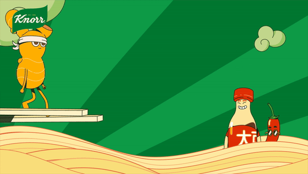 The ingredients incorporate subtle visual design elements with Asian inspiration, giving them greater tie to the main product. The reduced colour palette reinforces the simplicity of the piece, allowing the key elements of the illustration to stand out while emphasising Knorr’s brand identity.
